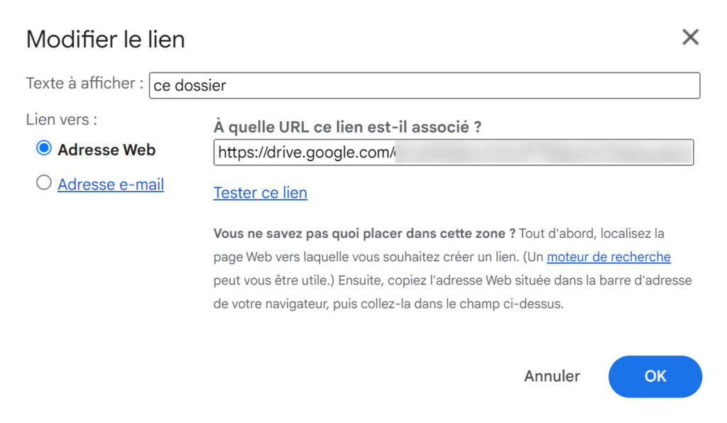 Le fait de passer par un lien vers un dossier Drive plutôt que par des pièces jointes contribue à éviter de trop saturer votre boîte de réception (ou celle de vos destinataires).